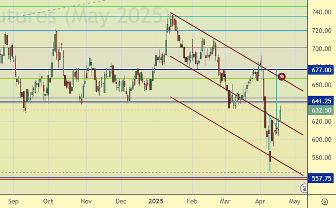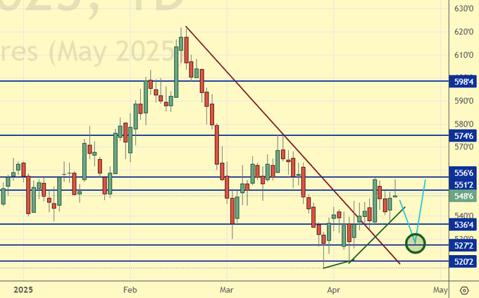Сценарий роста: рассматриваем майский контракт, дата экспирации 14 мая. Будет откат – будет покупка.