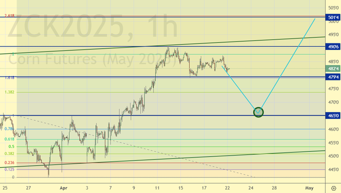 Нужен, нужен нам откат по кукурузе к 465.0. Это мы вчера писали. А сегодня мы встретим его с великой радостью и будем покупать, там, внизу. По рынку сырья покупки наилучшая идея. Нас ждет переоценка ценностей.