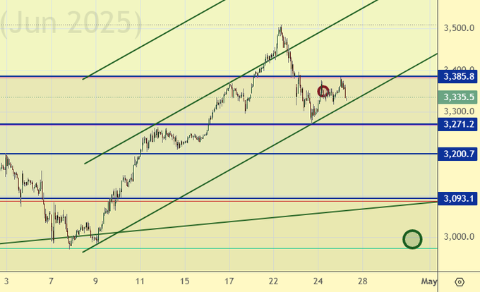 Продажа: нет. Кто в позиции от 3379, держите стоп на 3410. Цель: 3000.