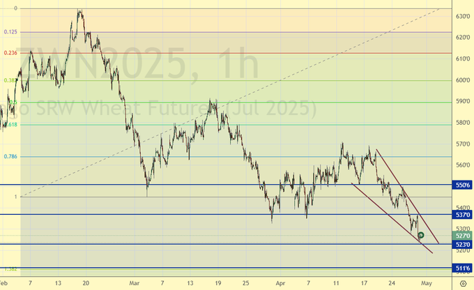 Пшеница (майский контракт, CME Group, исполнение 14.07.2025)