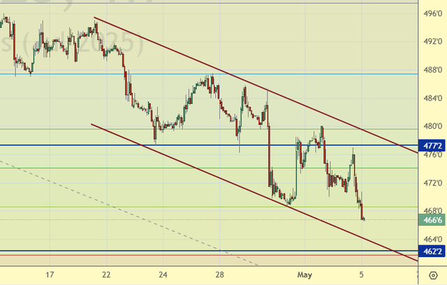 Да. Хорошо. Купим. Купим от 462.0. Уж, он прям нас так просит. Кукуруза может упасть и до 380.0. Вот там можно будет покупать на серьезную сумму.
