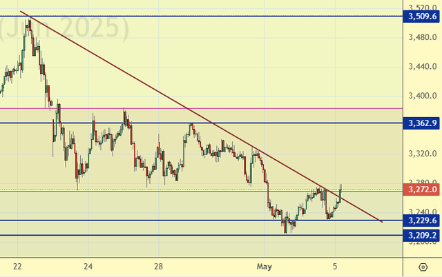 Здесь не факт, что мы снова пойдем вверх. Можем пощупать на прочность сопротивление в районе 3350, после чего падение скорее всего возобновится.