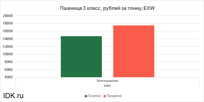 За прошедшую неделю с 28.04.2025 по 02.05.2025 средняя цена на пшеницу 3-го класса, согласно выставленным заявкам трейдеров, упала по всем округам на 42 рубля. Средняя цена составляет 16068 рублей за тонну.