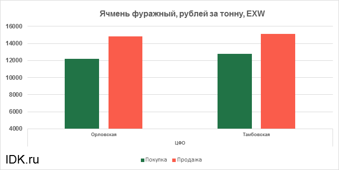 За прошедшую неделю с 28.04.2025 по 02.05.2025 средняя цена на фуражный ячмень, согласно выставленным заявкам трейдеров, выросла по всем округам на 47 рублей. Средняя цена составляет 13790 рублей за тонну.