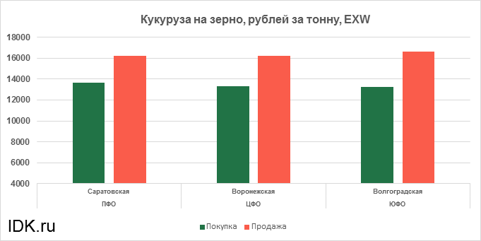 За прошедшую неделю с 28.04.2025 по 02.05.2025 средняя цена кукурузы на зерно, согласно выставленным заявкам трейдеров, упала по всем округам на 206 рублей. Средняя цена составляет 14893 рубля за тонну.