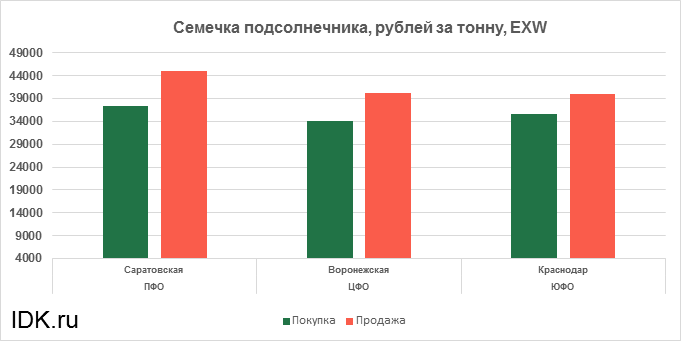 За прошедшую неделю с 28.04.2025 по 02.05.2025 средняя цена семечки подсолнечника, согласно выставленным заявкам трейдеров, упала по всем округам на 1542 рубля. Средняя цена составляет 38691 рубль за тонну.