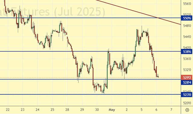 Пшеница (майский контракт, CME Group, исполнение 14.07.2025)