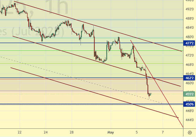 Покупка: нет. Кто в позиции от 525.0 (с учетом перехода на новый контракт), перенесите стоп на 527.0. Цель: 650.0.