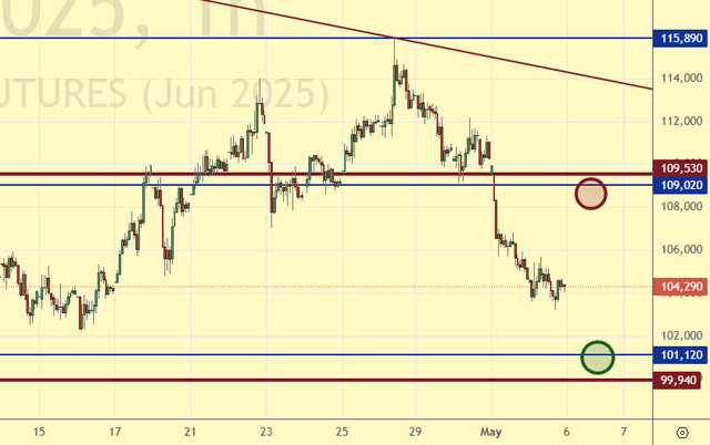 Продажа: при подходе к 109000. Стоп: 111000. Цель: 80000. Кто в позиции от 115400, перенесите стоп на 111000. Цель: 80000.
