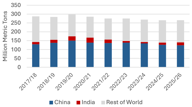 Ожидается, что более активное использование FSI, особенно в Индии, и увеличение использования кормов и остатков в ЕС приведут к рекордному мировому потреблению. Прогнозируется увеличение конечных запасов, в том числе в Индии, которое сдерживается сокращением запасов в Китае и Пакистане.