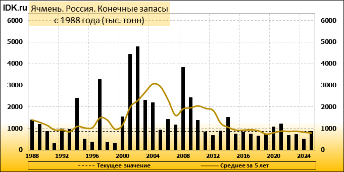 Валовый сбор: майская оценка сезона 25/26 составляет 18000 тысяч тонн. Потребление: оценивается в 14100 тысяч тонн. Экспорт: оценивается в 3600 тысяч тонн. Импорт: составит 50 тысяч тонн. Конечные запасы: составят 862 тысячи тонн.