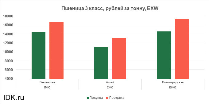За прошедшую неделю с 12.05.2025 по 16.05.2025 средняя цена на пшеницу 3-го класса, согласно выставленным заявкам трейдеров, выросла по всем округам на 229 рублей. Средняя цена составляет 14561 рубль за тонну.