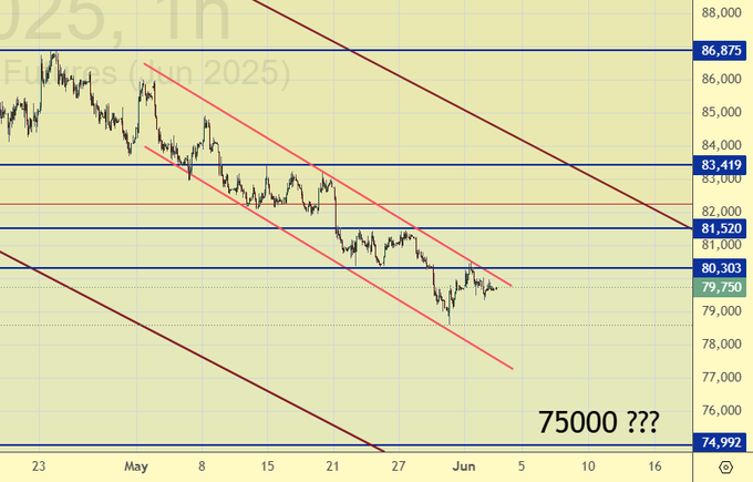 Покупка: в случае роста выше 81300. Стоп: 79000. Цель: 150000?!!!.