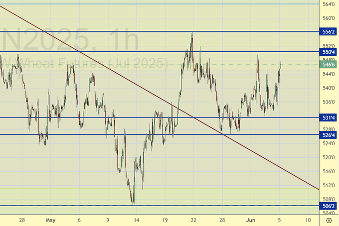 В Чикаго пшеница держится выше 530.0 в ожидании июньского отчета WASDE.