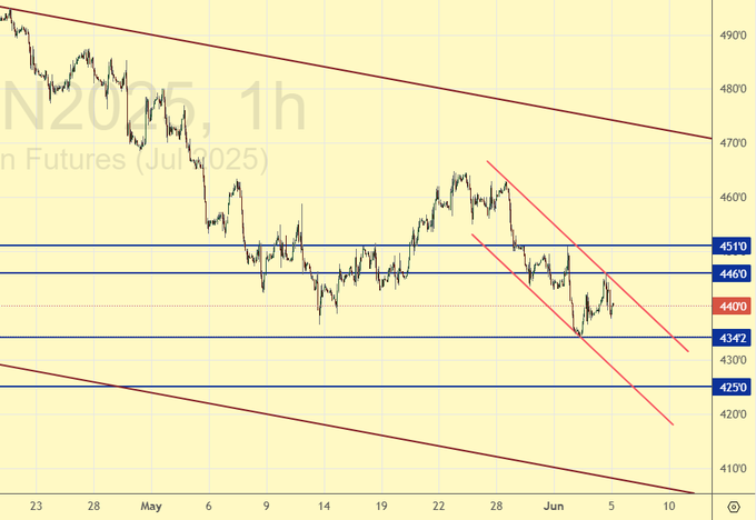 Кукуруза продолжает оставаться под давлением. Для того чтобы заявить права на рост, надо вернуться выше 450.0.