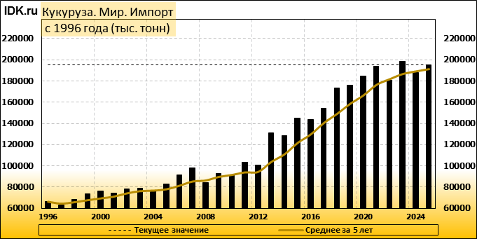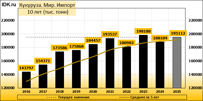 Импорт: составит 195112 тысяч тонн. Значение по прошествии месяца не изменилось.
