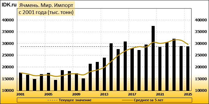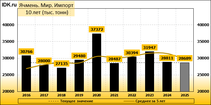 Импорт: составит 28689 тысяч тонн. Значение по прошествии месяца поднялось на 0.35 процента.