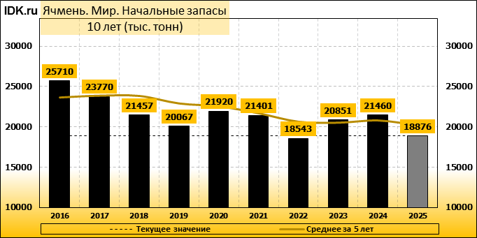 Конечные запасы: составят 18277 тысяч тонн. Оценка с последнего отчета снизилась на -0.76 процента.