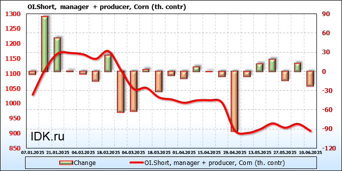 Открытый интерес производителей упал на 48 тыс. контрактов. Объем контрактов, направленных на хеджирование, составляет 1 021 015 штук. Деньги производителей в течение прошлой недели уходили с рынка не видя привлекательности в текущей ситуации.