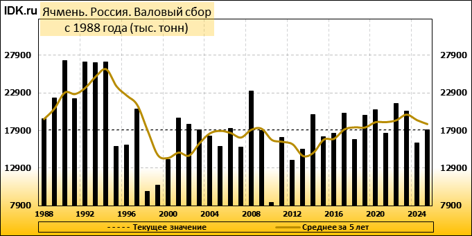 Валовый сбор: оценка не изменилась и составляет 18000 тысяч тонн.