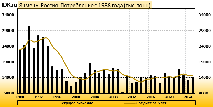 Потребление: показатель не изменился и составляет 14100 тысяч тонн.