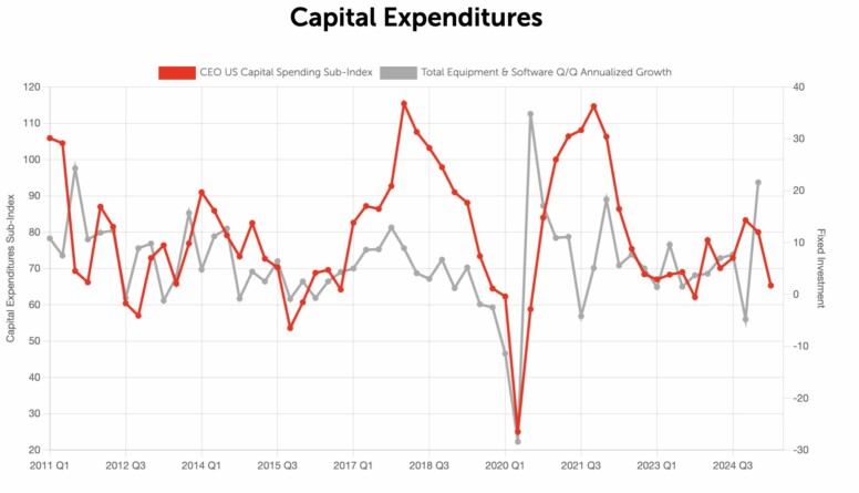 Рис 12. Субиндекс отражает планы руководителей относительно капиталовложений на ближайшие шесть месяцев Источник: Business Roundtable
