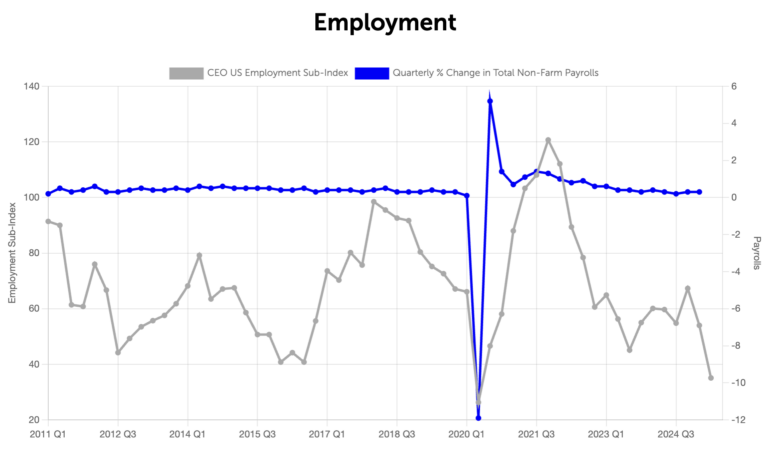 Рис 13. Ежеквартальный субиндекс занятости Источник: Business Roundtable