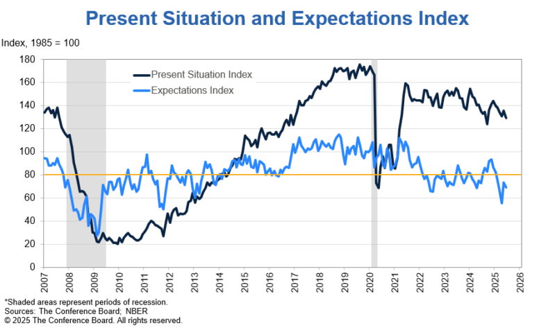 Настроения потребителей ухудшаются. Индекс потребительского доверия Conference Board в июне снизился на 5,4 пункта. Стефани Гишар, представитель компании: “Спад был значительным по всем компонентам, причем ухудшению способствовали как оценки потребителями текущей ситуации, так и их ожидания в отношении будущего. Потребители были менее позитивно настроены в отношении текущих условий ведения бизнеса, чем в мае. Их оценка текущей доступности рабочих мест снижалась шестой месяц подряд, но оставалась на положительной территории, что соответствует все еще стабильному рынку труда. Все три компонента Индекса ожиданий — условия ведения бизнеса, перспективы трудоустройства и будущий доход — снизились. Потребители были более пессимистичны в отношении условий ведения бизнеса и наличия рабочих мест в течение следующих шести месяцев, а оптимизм в отношении перспектив получения доходов в будущем несколько снизился.”