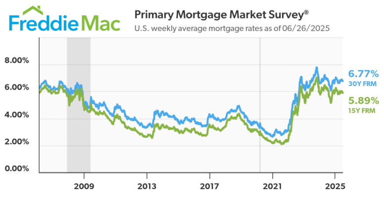Рис 19. Средние ставки по ипотечным кредитам в США за неделю по состоянию на 26.06.2025 Источник: Freddie Mac