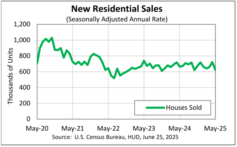 Продажи первичного жилья падают. Продажи недавно построенных домов упали на 13,7% в мае до 623 000 единиц в годовом исчислении.