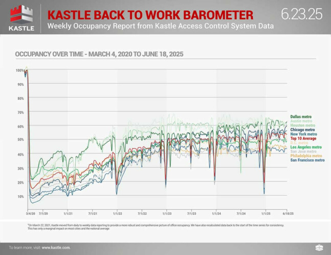 Рис 24. Еженедельный отчет о заполняемости офисов на основе данных системы контроля доступа Kastle Источник: Kastle