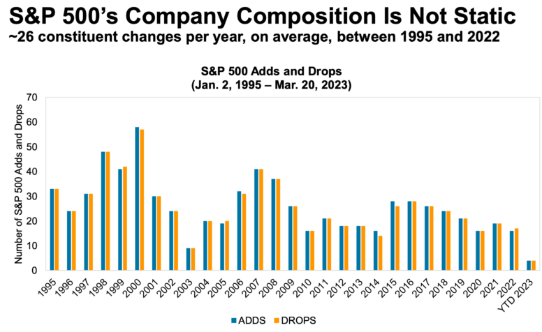 Пассивное инвестирование — это концепция, обычно связанная с покупкой и владением фондом, который отслеживает индекс. И ни одна стратегия пассивного инвестирования не привлекла столько внимания, как покупка индексного фонда S&P 500. Однако S&P 500 — индекс 500 крупнейших компаний США — это совсем не статичный набор из 500 акций.