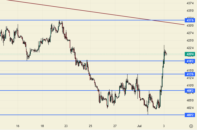Дерзкие вылеты вряд ли способны произвести впечатление, так как предложение на рынке будет существенным. Да, мы можем вырасти и эту историю надо контролировать, но вряд ли стоит сильно переживать на счет роста пока мы ниже 430.0.