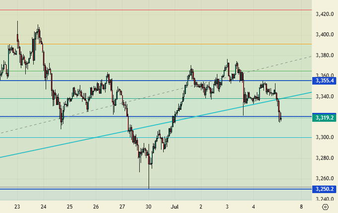 Продажа: сейчас (3319). Стоп: 3360. Цель: 2800?
