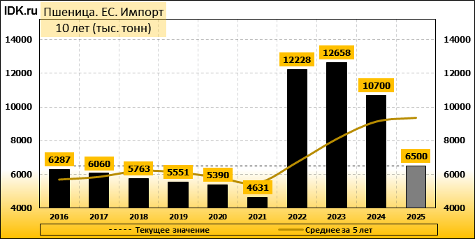 Импорт: составит 6500 тысяч тонн. Значение по прошествии месяца упало на -31.58 процента.