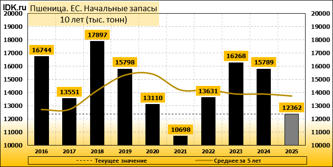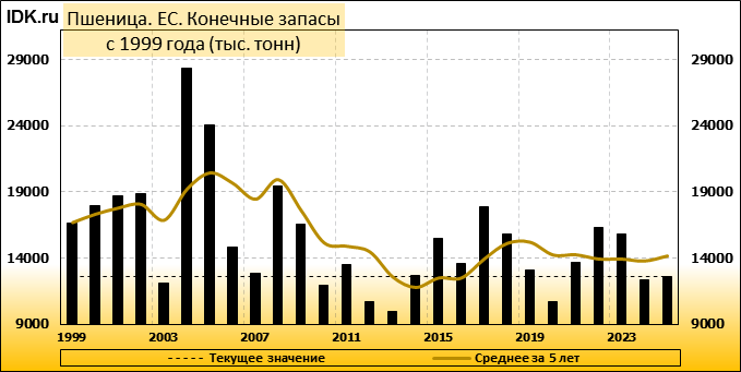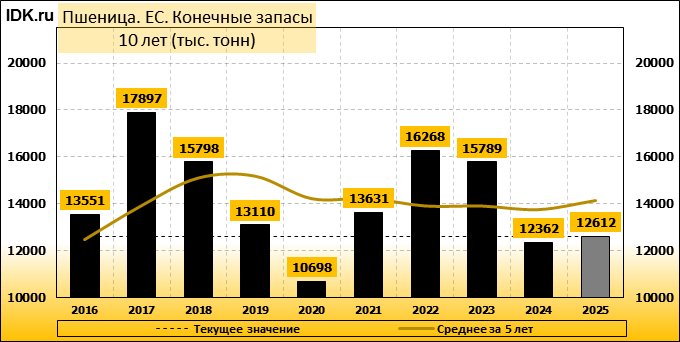 Конечные запасы: составят 12612 тысяч тонн. Оценка с последнего отчета снизилась на -2.32 процента.