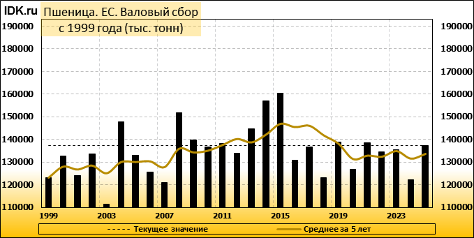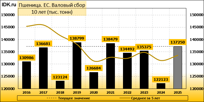 Валовый сбор: оценка пересмотрена в сторону повышения до 137250 тысяч тонн. Показатель вырос на 0.51 процента.