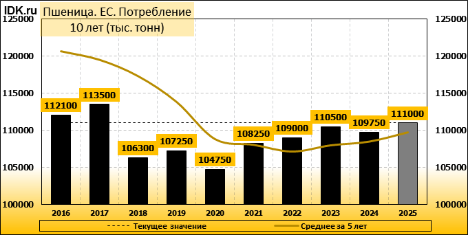 Потребление: показатель не изменился и составляет 111000 тысяч тонн.