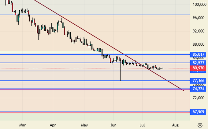 Сценарий падения: ниже 75000 рынок не виден, но сам ход к 75000 будет интересным.