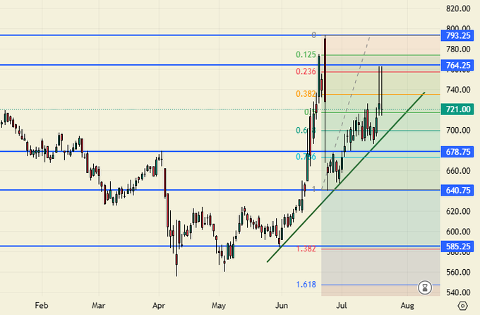 Покупка: при подходе к 580.0. Стоп: 560.0. Цель: 740.0.